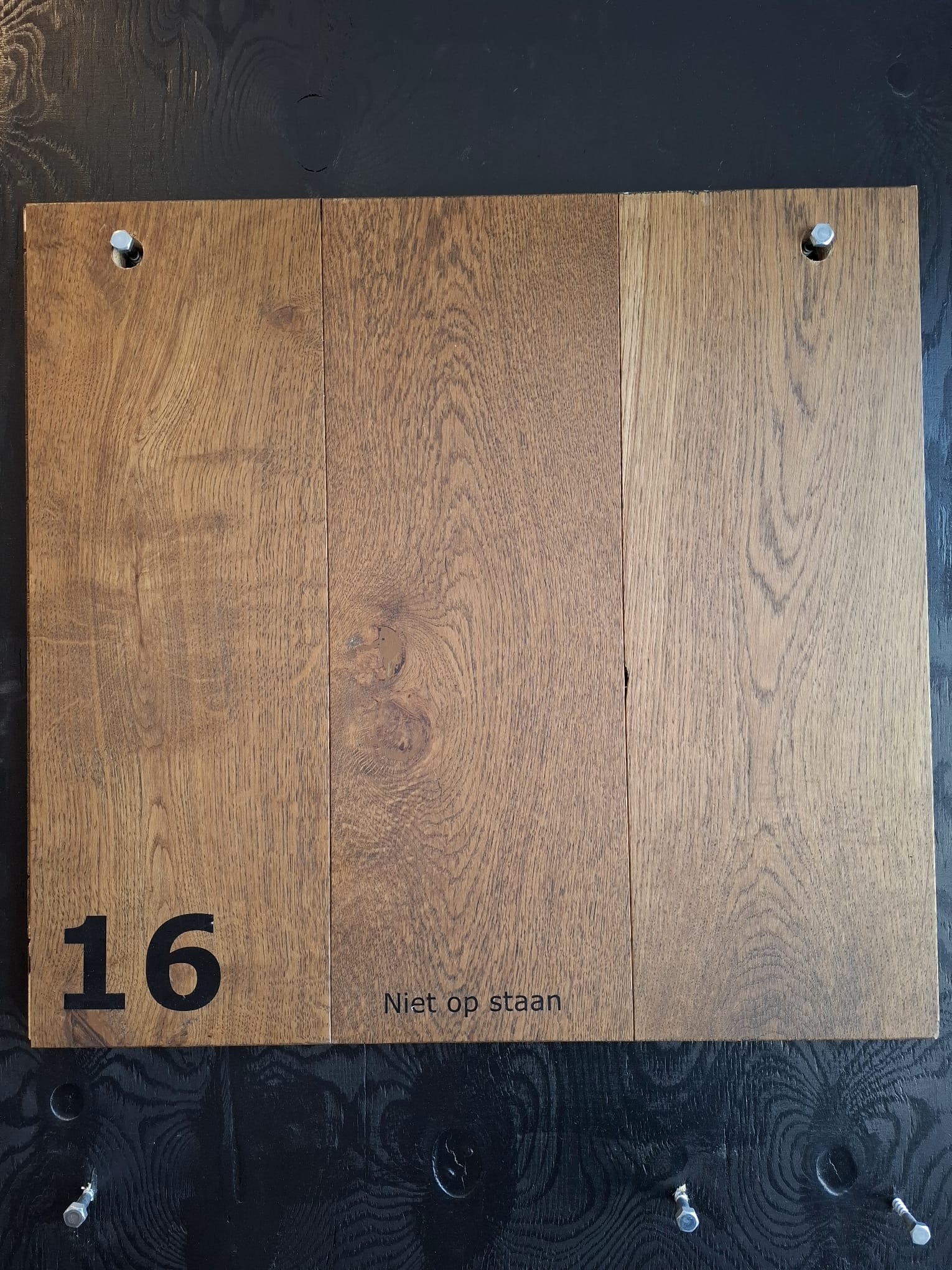 Voorbeeld zoals afgebeeld is afgewerkt in een hardwaxolie met een bruine kleur Nr.16