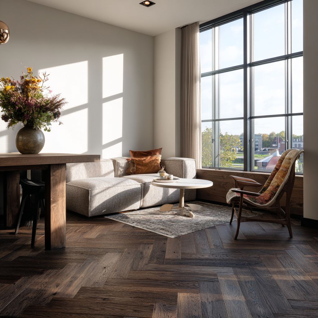 Deze eiken walvisgraat vloer is eventueel af te nemen te samen met dampfolie, ondervloer (of lijm), plinten en olie (of lak). Hiermee bespaart u tijdelijk fors op de losse aanschaf van enkel de walvisgraat vloerdelen en heeft u direct alle leg materialen compleet bij elkaar, welke uiteraard volledig op elkaar zijn afgestemd.
