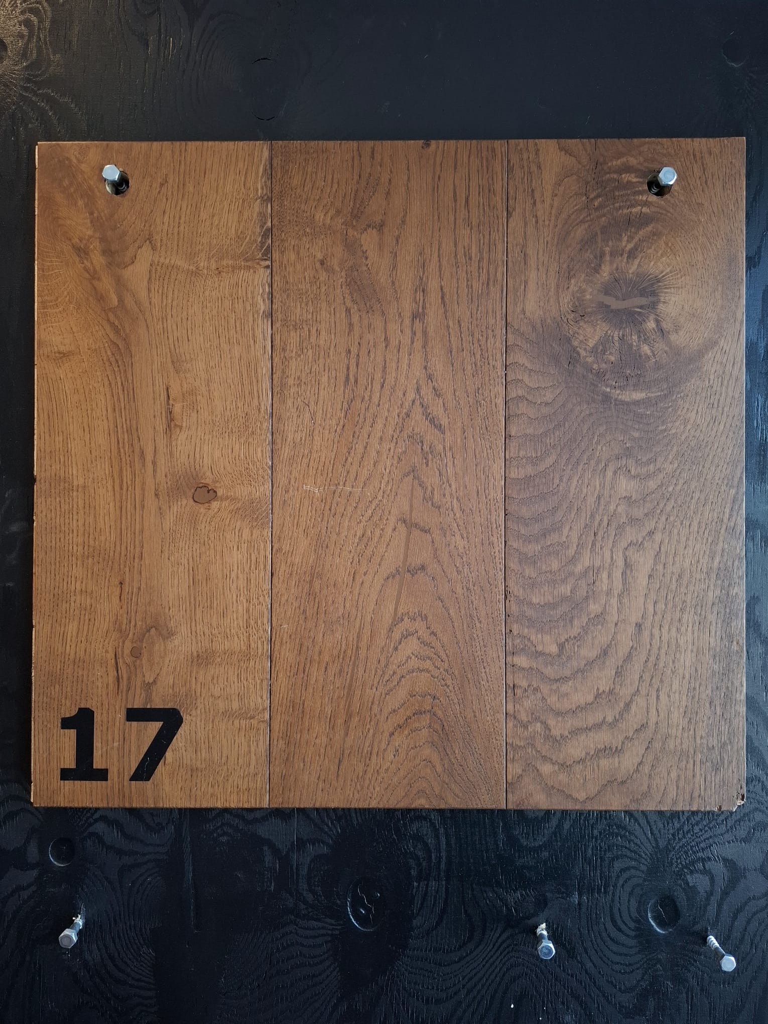 Voorbeeld zoals afgebeeld is afgewerkt in een hardwaxolie met een bruine kleur Nr.17