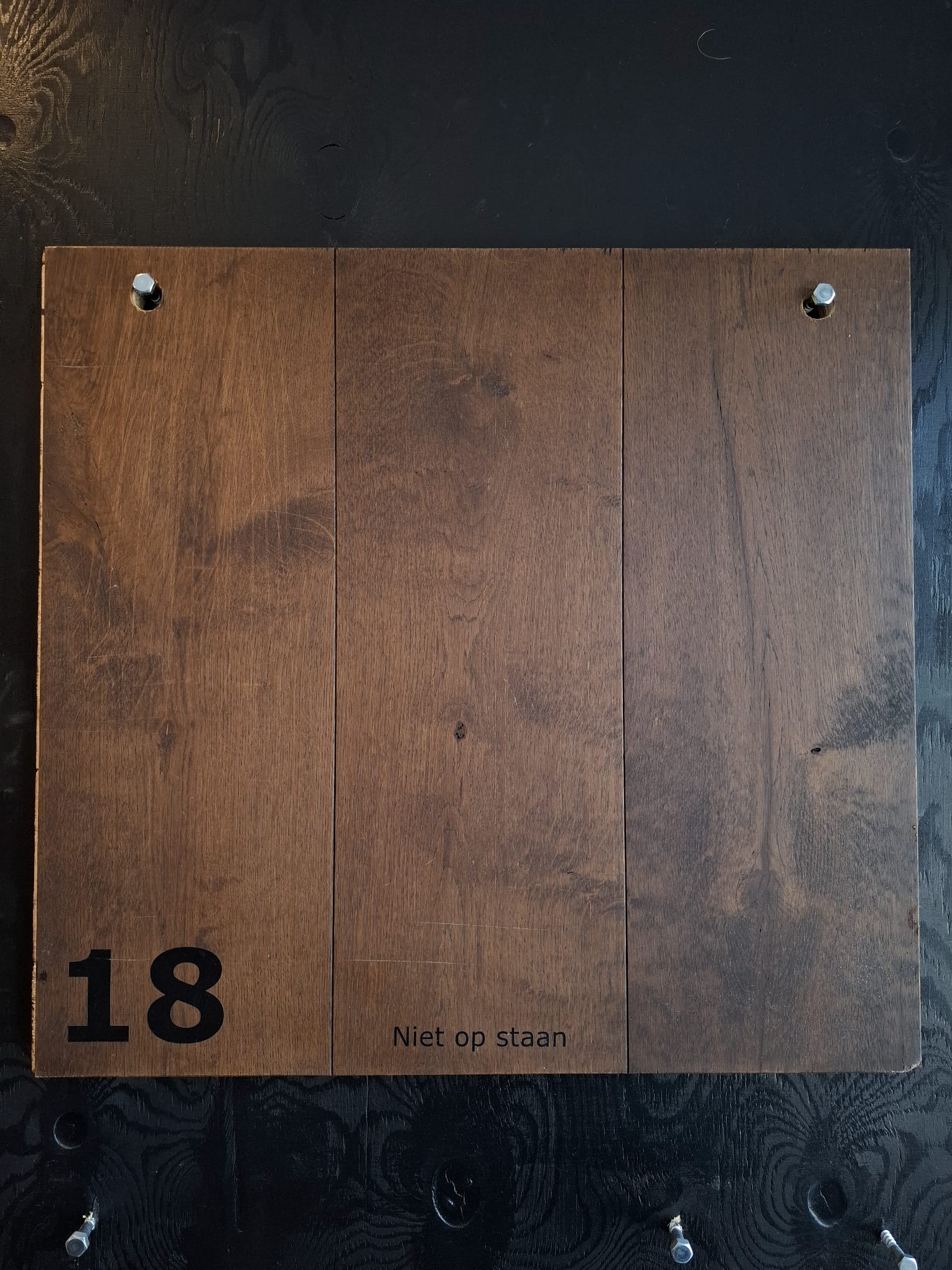 Voorbeeld zoals afgebeeld is afgewerkt in een hardwaxolie met een bruine kleur Nr.18